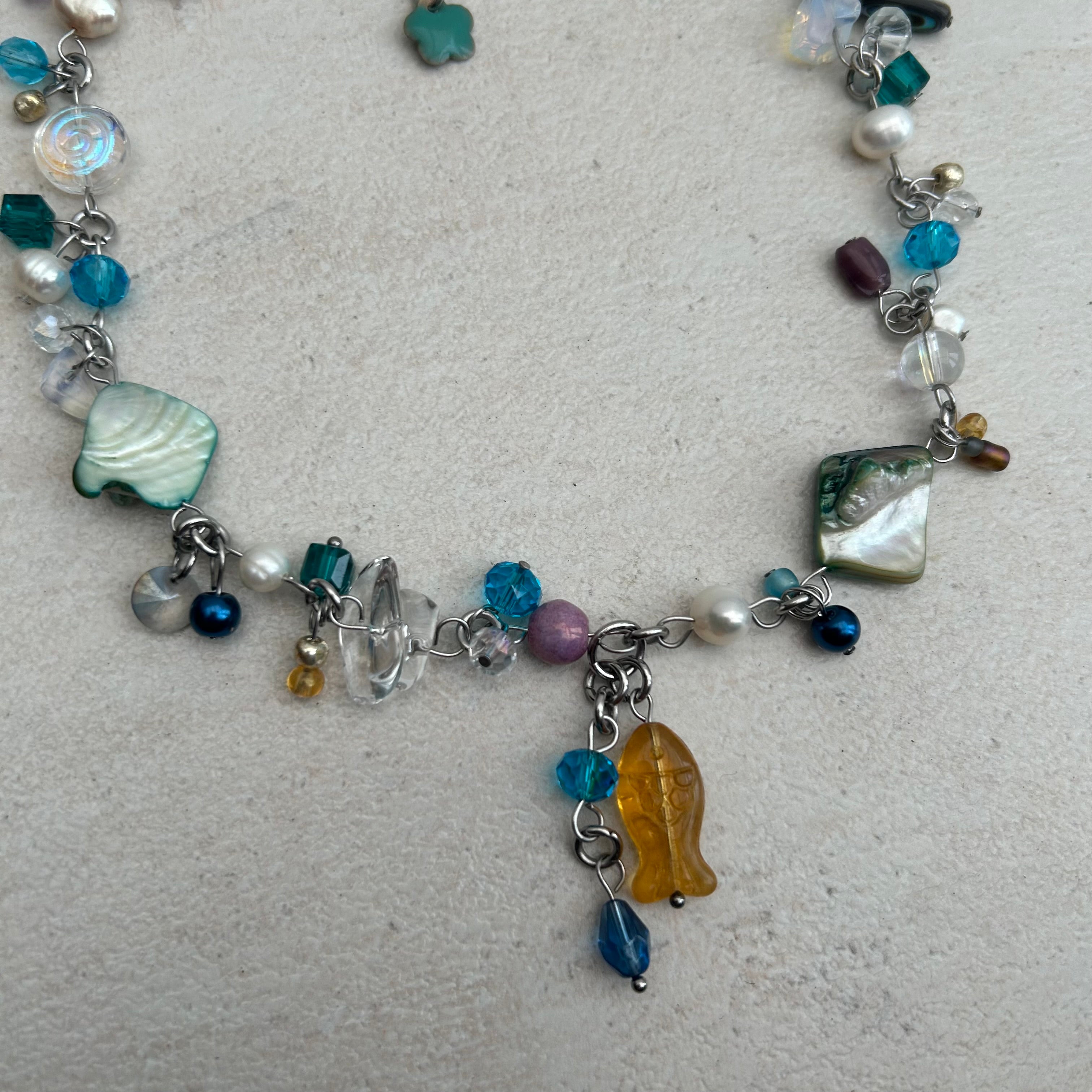 sage green glass fish stainless steel necklace